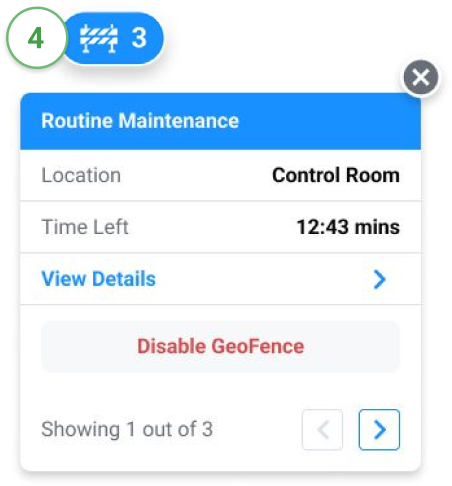 When a user is in a zone where a GeoFence-enabled job is taking place, the green user icon and the blue job icon will appear combined as a single interactive marker.